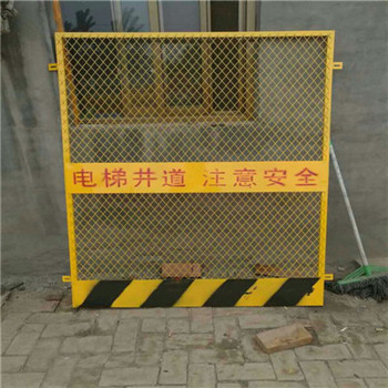 2、在電梯井道中使用的安全防護門通常被人稱為電梯井道防護門,門高1.8m,下部設150mm高踢腳板,緊貼樓地面安裝,防護門的兩側邊超出電梯井口的部分應在300mm以上,防護門兩側固定在結構墻上的固定點應在三點以上。